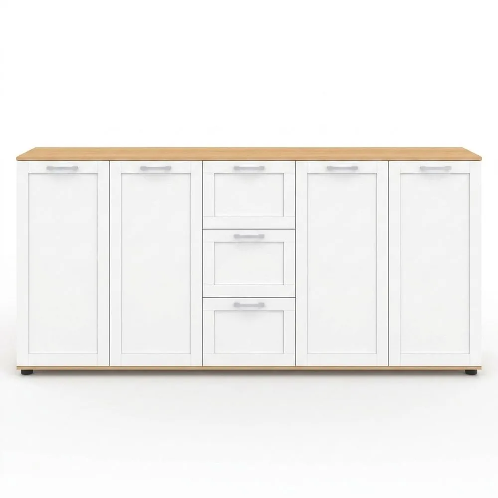 Aparador Grande de Madera y Blanco con 4 Puertas y 3 Cajones 180 cm