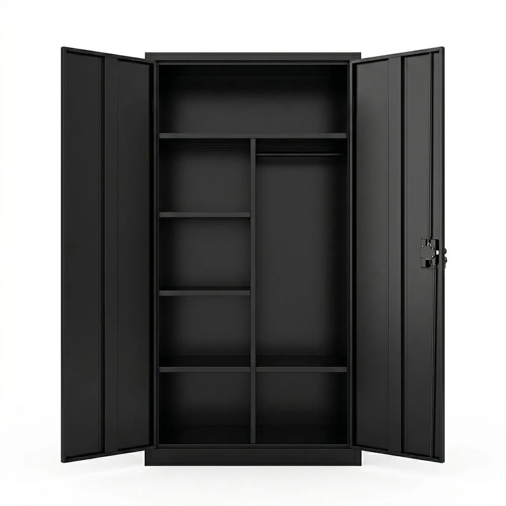 Este armario de 5 estantes con dimensiones de 40 x 60 x 180 cm proporciona espacio adecuado para organizar diversos artículos. Los estantes ajustables permiten adaptar el espacio a necesidades específicas y la cerradura garantiza seguridad. Fabricado con acero de alta resistencia, cada estante soporta hasta 25 kg, asegurando una estructura robusta. Puede utilizarse en diferentes ambientes, como garajes, oficinas o cocinas. El montaje es sencillo gracias a las instrucciones claras y las piezas etiquetadas, reduciendo el tiempo necesario para su ensamblaje.