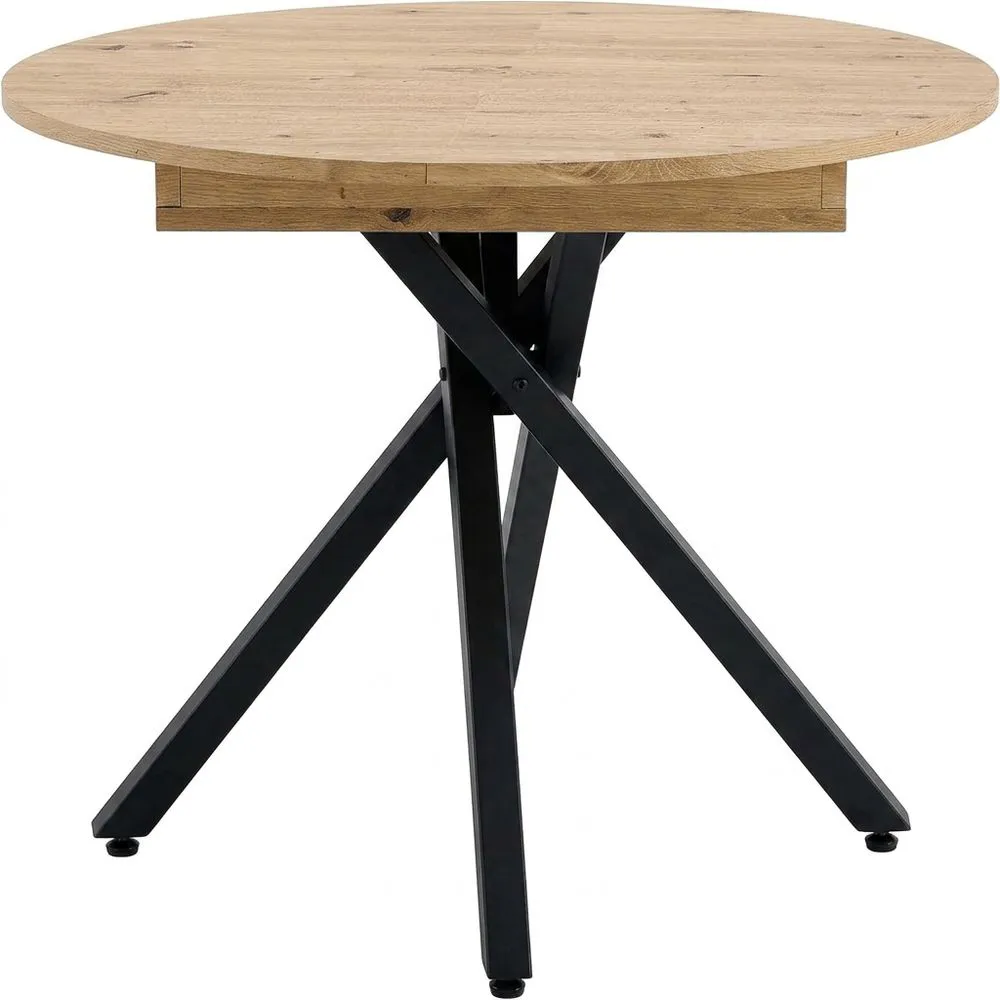 La mesa de comedor extensible permite optimizar el espacio en tu hogar. Gracias a su función plegable y extensible, se adapta según tus necesidades. Esta mesa redonda presenta un diseño moderno para distintos ambientes como salón, comedor o cocina. Las patas metálicas ajustables en altura facilitan su adaptación a diferentes preferencias. Con unas dimensiones de 90-120 x 90 x 75 cm, ofrece un espacio amplio para disfrutar de comidas o reuniones. La combinación de roble y negro le da un aspecto contemporáneo. La estructura de patas metálicas asegura estabilidad y durabilidad. Esta mesa extensible se ajusta fácilmente a tus necesidades, ofreciendo una solución práctica y funcional para cualquier estilo de decoración.