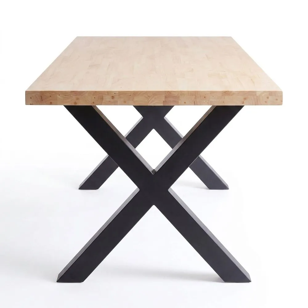 Esta mesa de comedor se adapta a comedores, salas de estar y cocinas gracias a su diseño industrial. Está acabada en madera de roble y patas de metal negro.